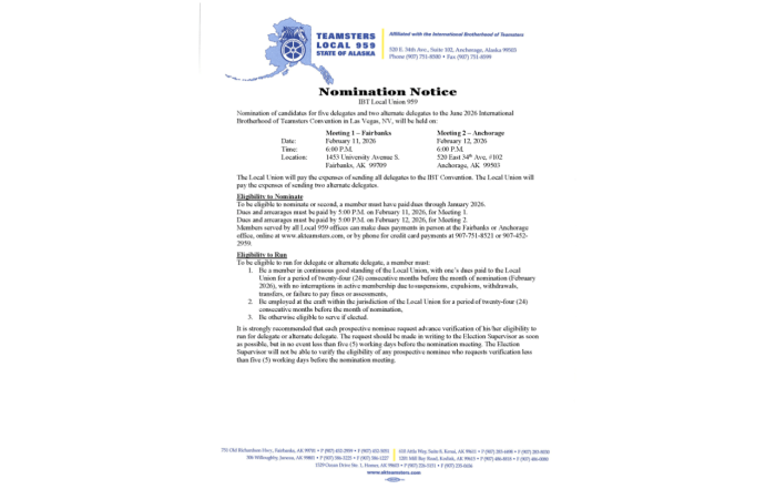 You don’t have to look far to find a hard-working Teamster in Alaska. Local 959 members are far-reaching across our state and because of this reach, our Members help bring to light where partnership is [ read more...]